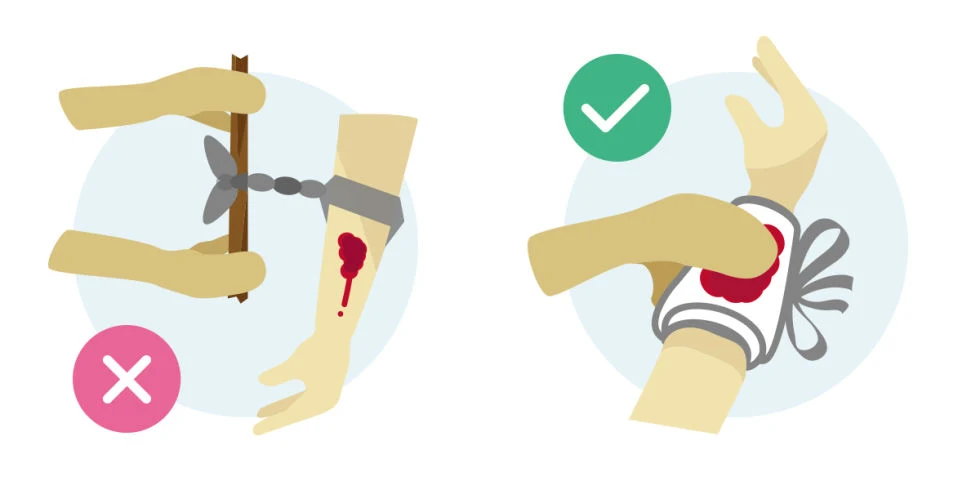 Do Instead: Prevent damage to a leg, arm, or even finger by applying pressure directly on top of or beside a wound with gauze. As the bleeding subsides, bandage over the area with fresh gauze and elevate it.